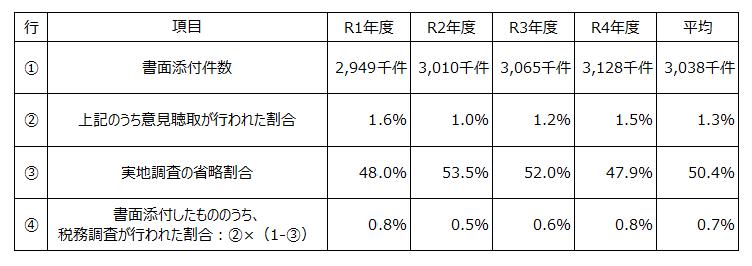 では、実際にどのくらいの確率で調査が省略されるのでしょうか。 国税庁の資料等をもとにしたデータを見てみましょう。
